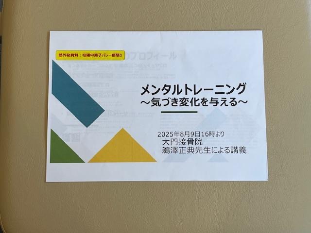 前月の報告をし忘れたので報告致します。8月9日(土)岩槻区柏陽中男子バレーボール部にメンタルトレーニングを実施いたしました。