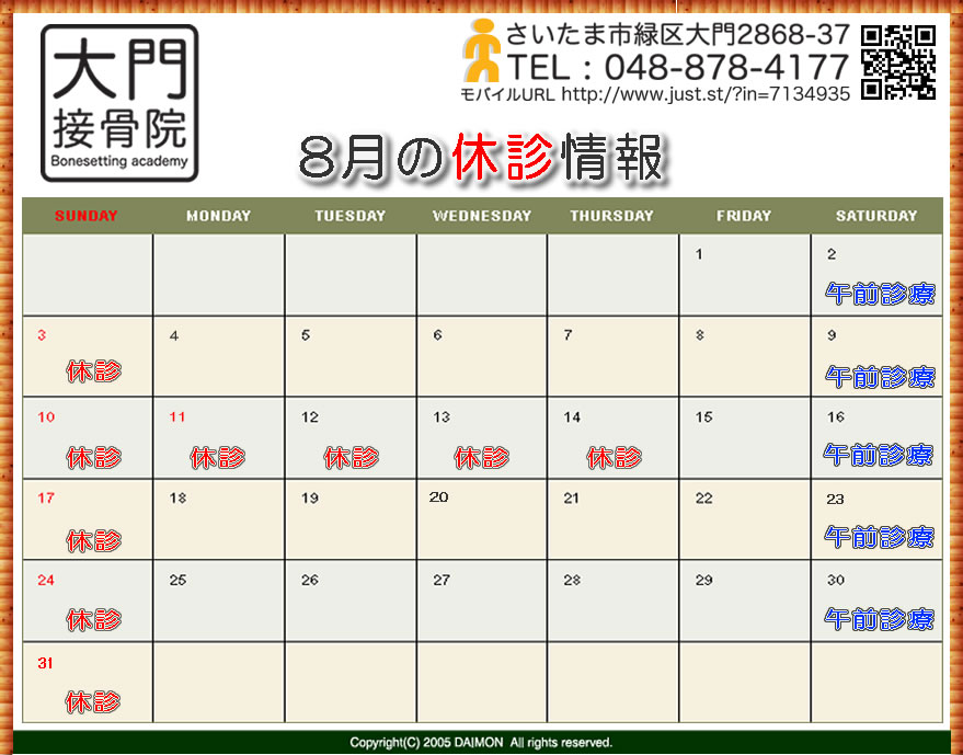 詳しくは8月の診療スケジュールをクリックして下さい。
