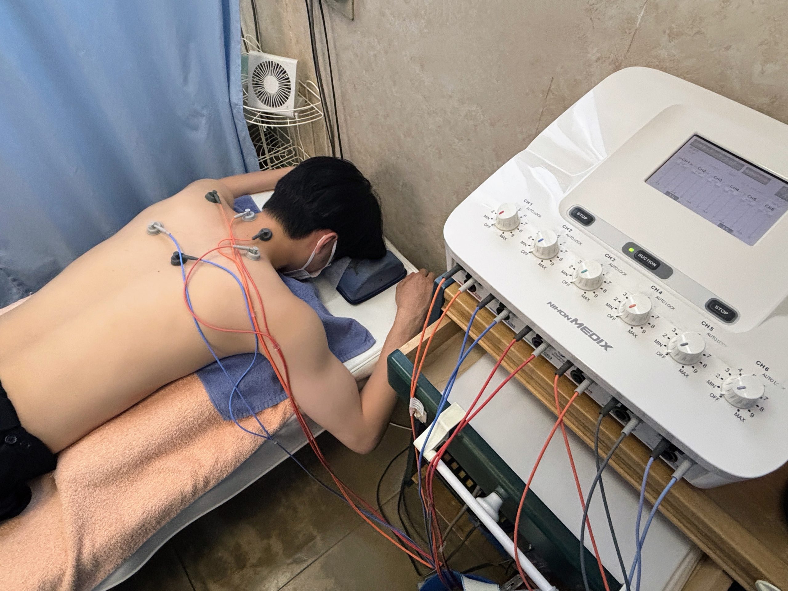 SSP電極をツボに当て皮膚表面電気刺激により患部の緊張緩和、血行促進に効果を発揮します。