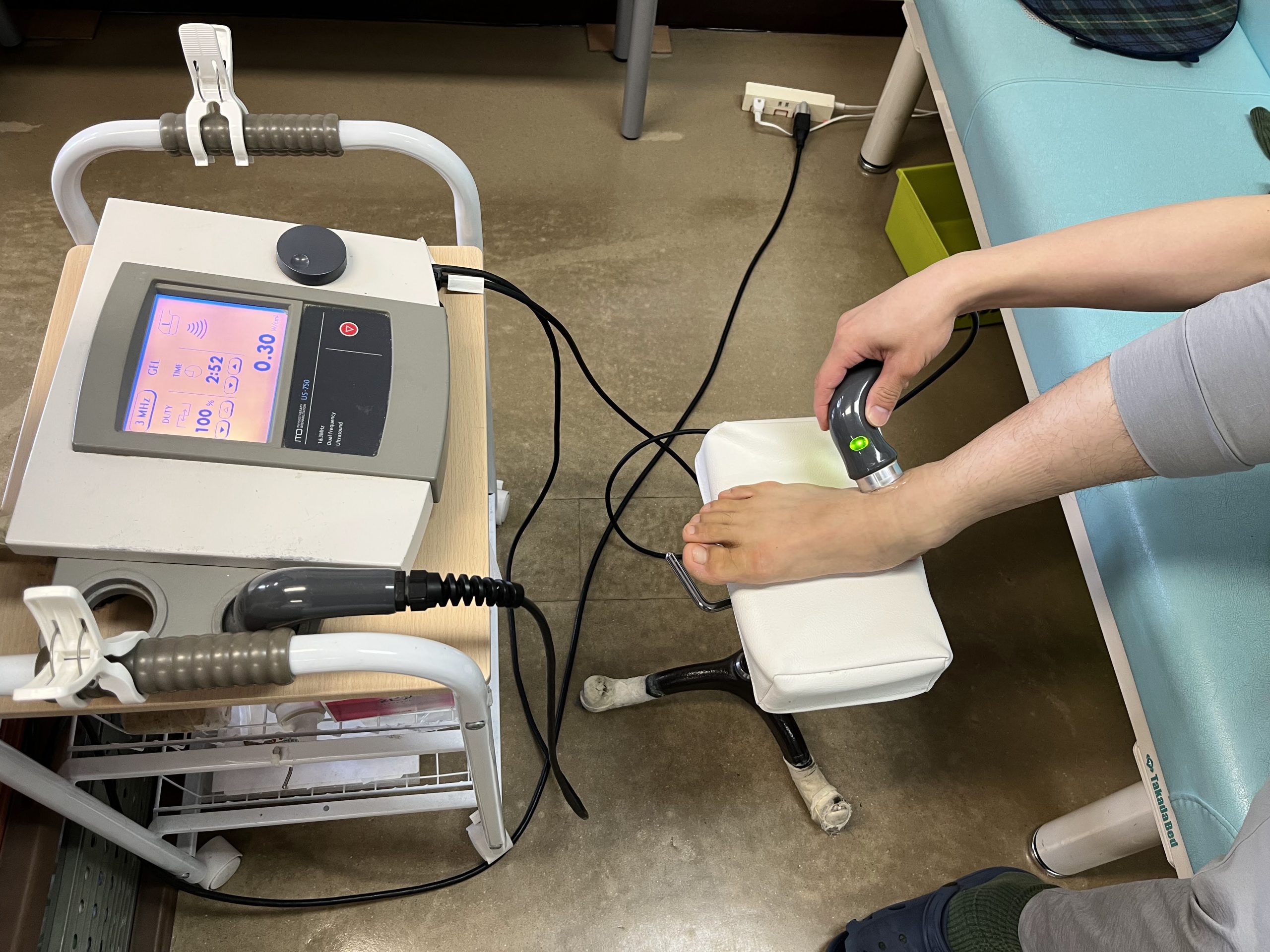 身体に超音波を照射することにより患部の自然治癒力を高め、急性の外傷性(骨折等)から